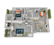 Our two bedroom apartments for rent offer spacious and inviting floor plans with the amenities you seek. The kitchen has stainless steel appliances, including a dishwasher and microwave, and features quartz countertops, upgraded lighting, and contemporary finishes. Large closets and an in-home washer and dryer make your every day easier. Your pets are also welcome; dogs can romp and play in the bark park.